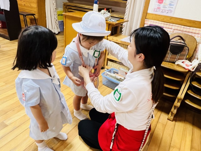 ☆幼稚園の⾊々な場所で遊んでみよう ☆無償化書類提出・制服サイズ合わせ |