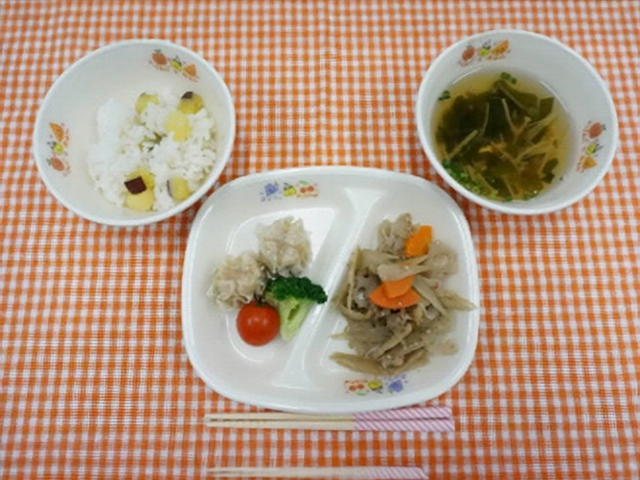 年中・年長組では、小学校給食への移行を見据えた「一汁二菜」給食を導入しました。