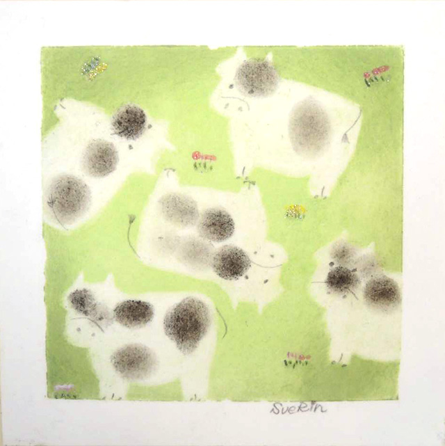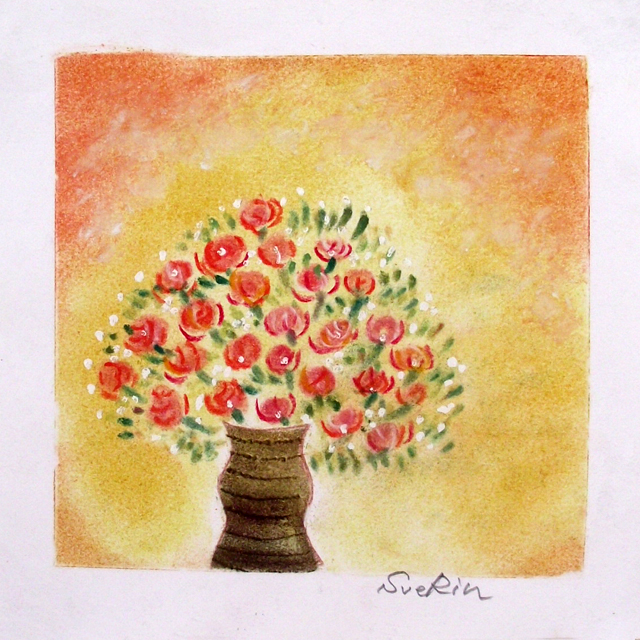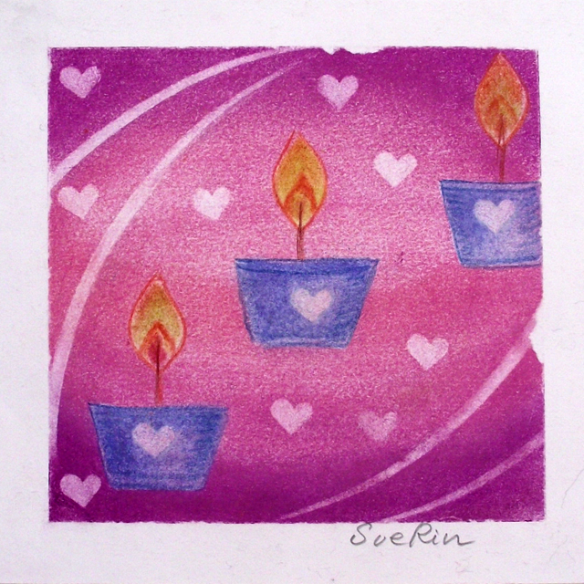 色や形や構図は自由で何のルールもなく、ただ描くだけで、大人も子供の頃に戻った気分で、うきうき、わくわくした嬉しい、楽しい気持ちに なり、自分自身への励ましや、少し疲れた時の勇気づけにもなります。