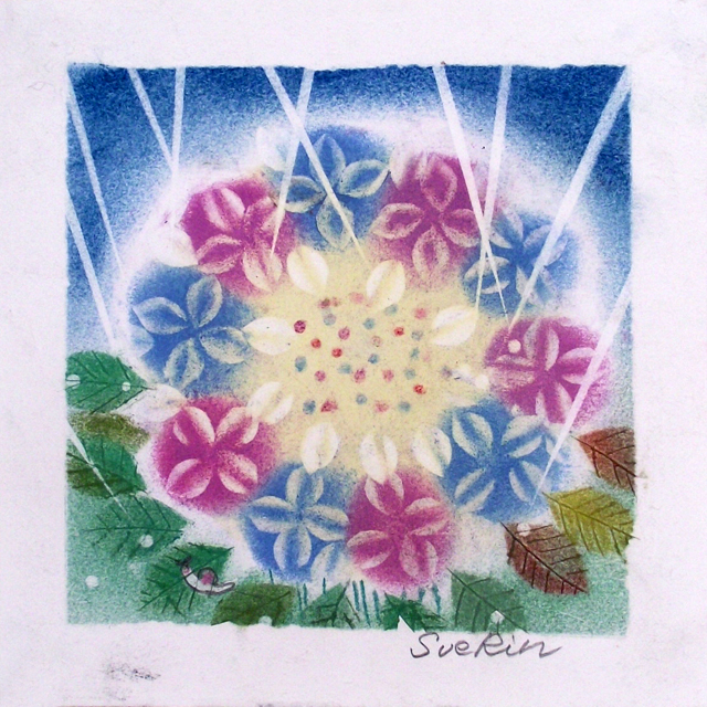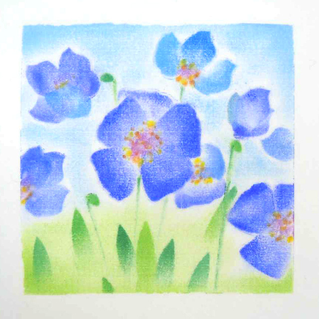 『パステル和(NAGOMI)アート』 は、パステルの素材の特性である穏やかで温かみのあるパステルトーンが特徴で、それをパウダー状にして指で描くという、素朴で独特な技法が融合して生み出す、透明感のある優しくて心地よいアートです。柔らかい光や風なども 表現しやすい、穏やかで心和むアートです。