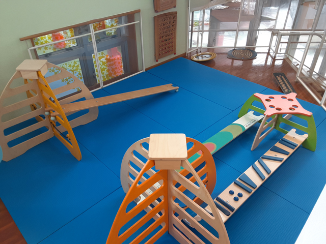 年少組・年中組・年長組のすべてのブースの壁が移動でき、4つの教室が一つの大きな広場に大変身!!