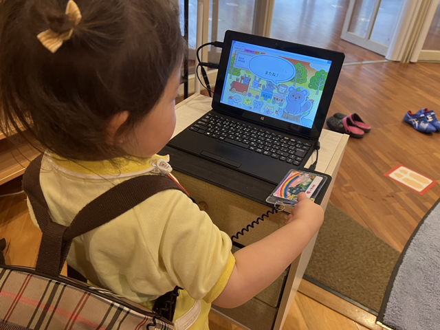 通園かばんにICカードを付け、登園時・降園時に子ども達が自分でスキャンした情報がえんとつを通じて確認出来ます。