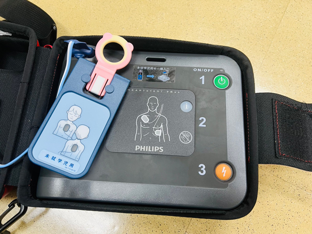 子ども専用のAED(自動体外式除細動器)を導入しています。